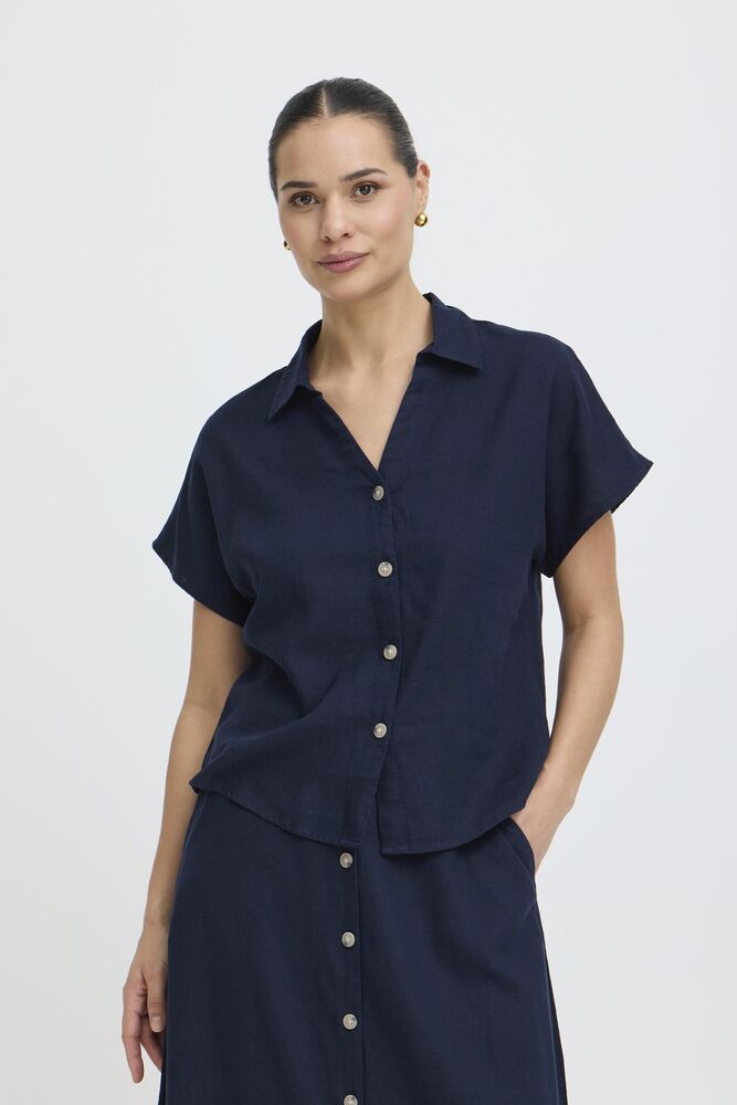 BYFALAKKA – Marinblå kortärmad linneskjorta